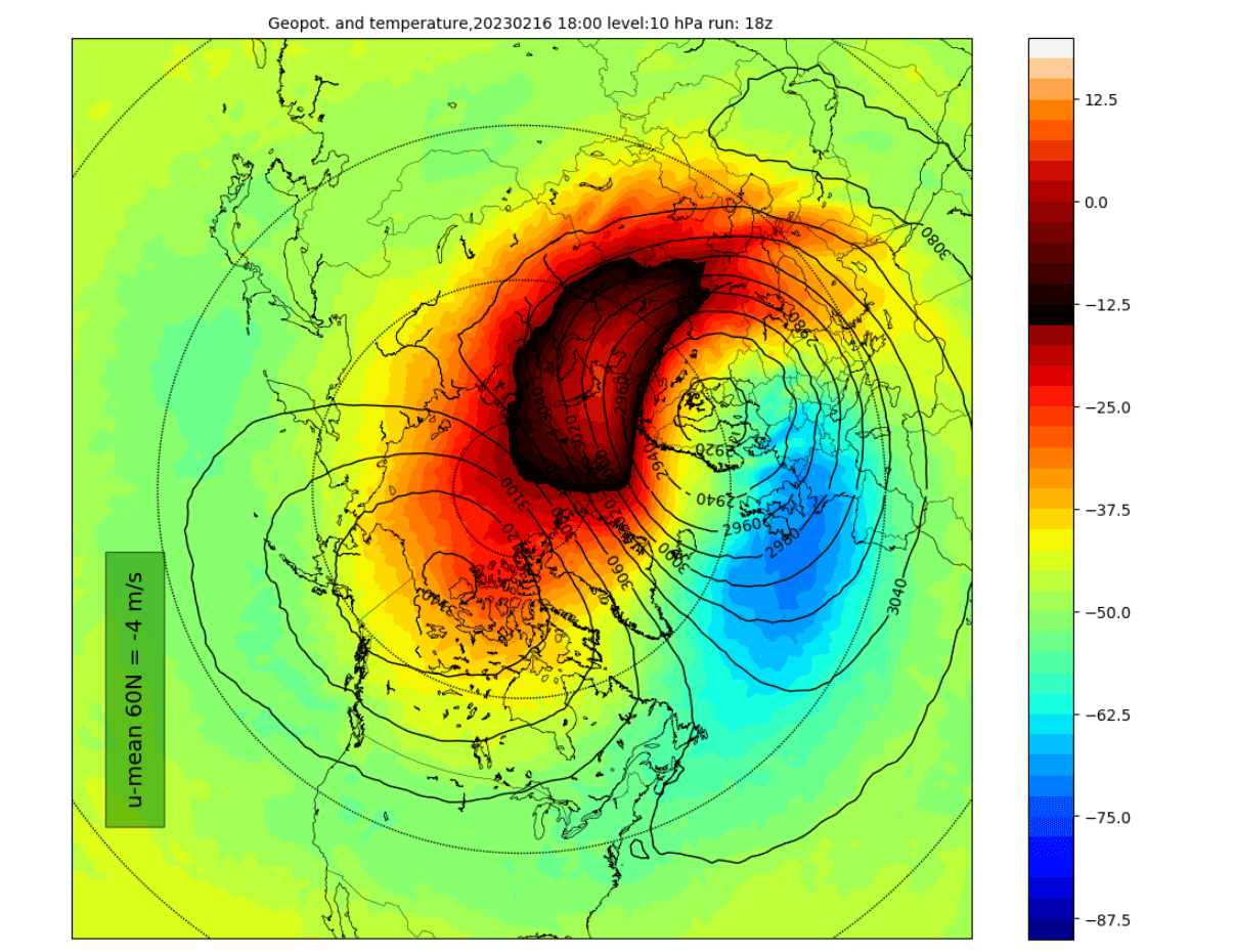 Polární vír je vír studeného vzduchu, který se v zimě vždy rozvíjí nad severním pólem ve výškách nad 10 kilometrů. Každých pár let však tento vír uprostřed zimy výrazně zeslábne. Tak tomu je i tento týden. Na konci tohoto týdne se vzduch ve výšce cca 30 kilometrů nad severním pólem oteplí o více než 50 stupňů. Několik modelů počasí zároveň předpokládá, že vítr bude ve vysokých nadmořských výškách nad šedesátou rovnoběžkou měnit směr. Obě změny dohromady se označují jako stratosférické oteplení neboli SSW. To se statisticky děje každé 2 roky.